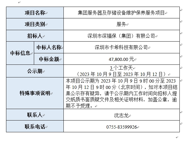 集团服务器及存储设备维护保养服务项目已完成评审,现将本项目评审的相关情况及结果进行公示,具体内容如下: