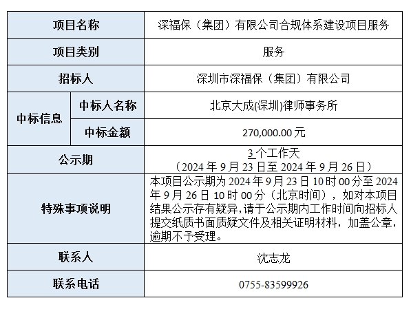 深圳市乐鱼leyu(集团)有限公司合规体系建设项目服务已完成评审,现将本项目评审的相关情况及结果进行公示,具体内容如下: