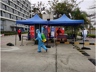 随着深圳市生物医药创新产业园区复工复产的企业增加和人员逐步到岗,园区疫情防控工作迎来新的挑战。为提高园区防控新冠病毒疫情的应急处置能力,提升全员防控意识,有效控制疫情传播,切实保障入园人员的健康安全和企业复工复产顺利进行,园区物业服务中心于3月3日上午举行了新冠病毒疫情防控演习,共有园区10家企业50人参加,并邀请了街道办、派出所及社区等相关单位予以指导。