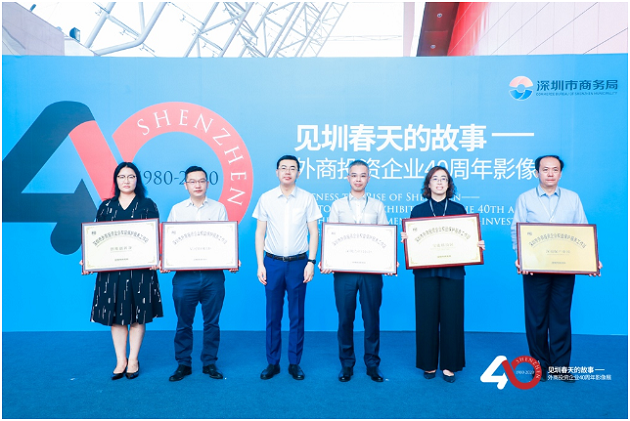 7月20日上午,深圳市商务局主办的“见圳春天的故事——外商投资企业40周年影像展暨权益保护服务工作站授牌仪式”在市民中心举办。深圳市政府副市长艾学峰出席活动,宣布影像展开幕并进行工作站授牌。在授牌仪式上,艾学峰副市长向深圳市国际投资推广联合会颁授“深圳市重点产业园区外商投资企业权益保护服务工作站”牌匾,向乐鱼leyu产业园等5个重点产业园区颁授“深圳市外商投资企业权益保护服务工作站(分站)”牌匾。尹忠华副总经理代表乐鱼leyu集团上台领受此项荣誉牌匾。